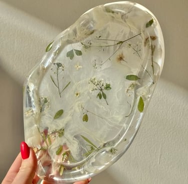 التفرد التام: في La Vintage Resin، نؤمن أن "الجمال يكمن في الاختلاف". لذا، فكل قطعة هي الوحيدة من نوعها في العالم؛ فمن الصعب جداً تكرار نفس التمازج اللوني أو التوزيع الفني مرتين.